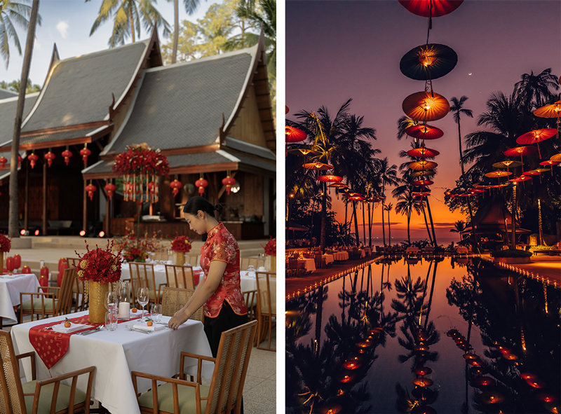 Descend into the tropics, and the festival loosens its tie, trading snow for humidity and high-spirits. Amanpuri in Phuket reimagines the holiday as the ultimate family gathering. Days are filled with the vibrant chaos of Ang Pao parades and craft making, while evenings settle into a glamorous hum poolside. Think Guzheng music floating over the water, fire performances cutting through the dark, and the scent of Chinese specialties lingering in the humid air.