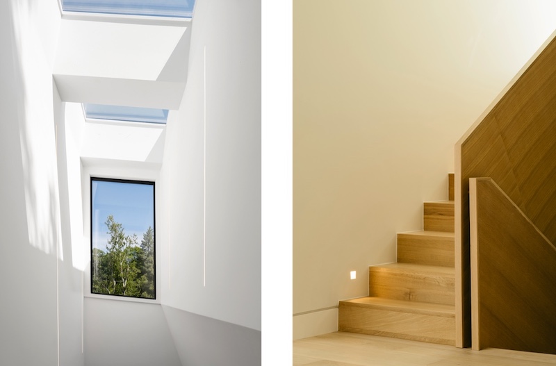 “Like the receding tones of a mountain landscape in a watercolour painting, the second floor folds into the mist of the ravine,” Bessai illustrates. “This produces a layered effect from the front while providing privacy and intimacy in the new bedrooms. The addition is subtle, contemporary, minimalist.”