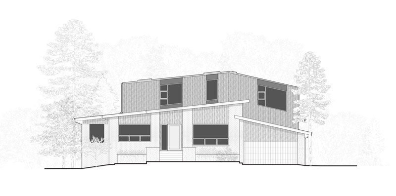 “Our strategy was to fully respect the qualities and presence of the original mid-century modern house—particularly at the front, with its characteristic low-pitched, overhanging roofs,” Bessai explains.