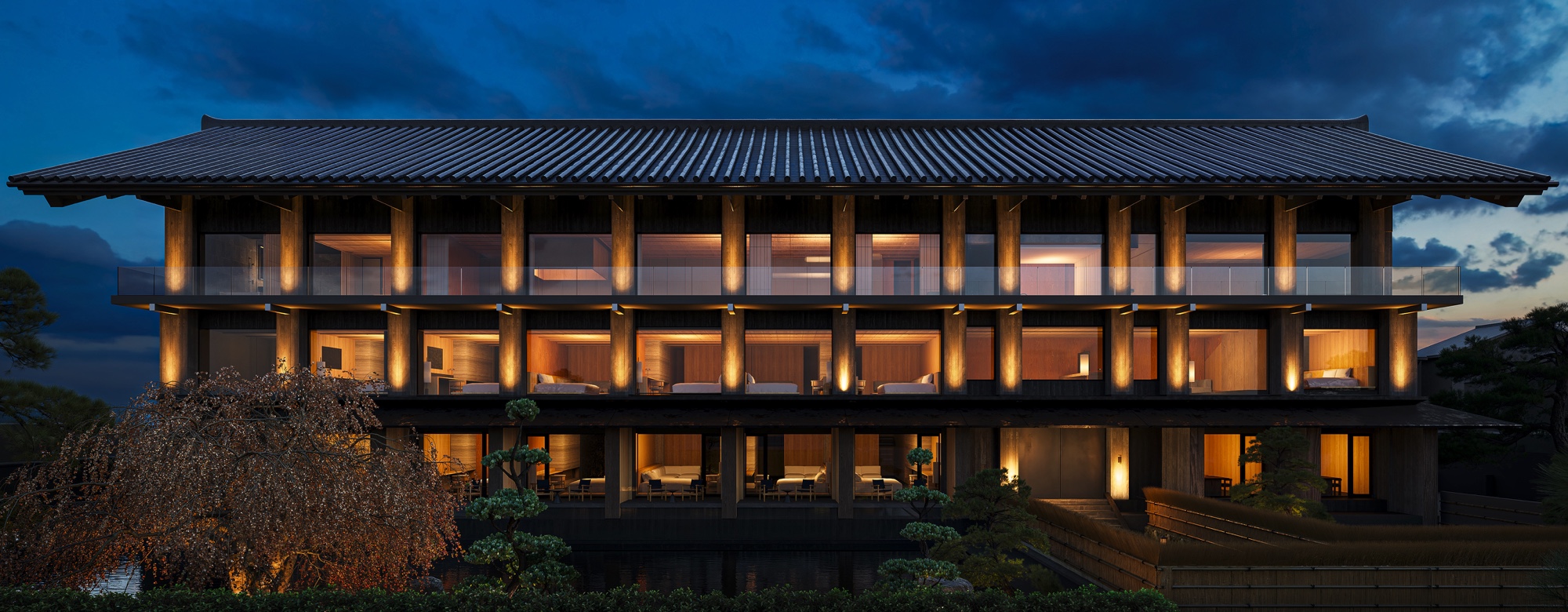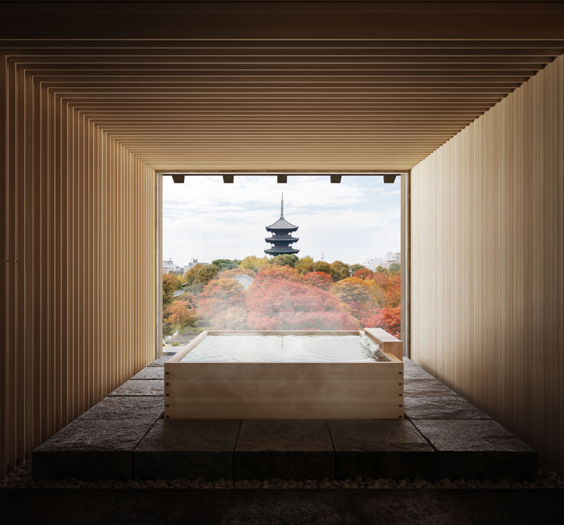 The inaugural project resides within Kyoto’s 1,200-year-old Tō-ji Temple. Within the hushed reverence of these grounds, a former lodging for monks is being transformed into a sanctuary for the modern traveller. The essence of Heian-period heritage is upheld through clean-lined architecture, shoji screens, and a meticulously crafted Japanese garden. Here, the Buddhist wisdom of the “Five Great Elements” is woven into the physical experience: a state-of-the-art gym encourages the movement of Wind, while a palette of wood and stone grounds the space in Earth.