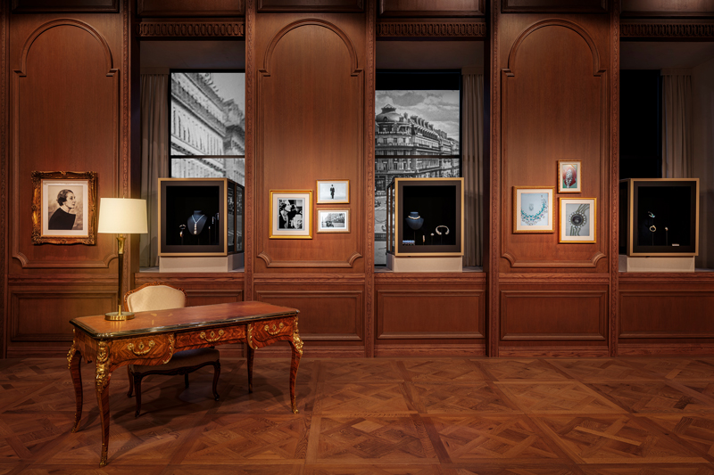 A subsequent room examines the panther through three visual languages—naturalistic, graphic, and abstract—each represented by jewelry and watches that chart changing aesthetic attitudes across generations. Nearby, a room devoted to Cartier’s Métiers d’Art pulls back the velvet curtain, revealing the patient virtuosity behind the illusion: fur-setting that mimics movement, sculptural techniques that give weight to form, and glyptic work that rewards close attention.