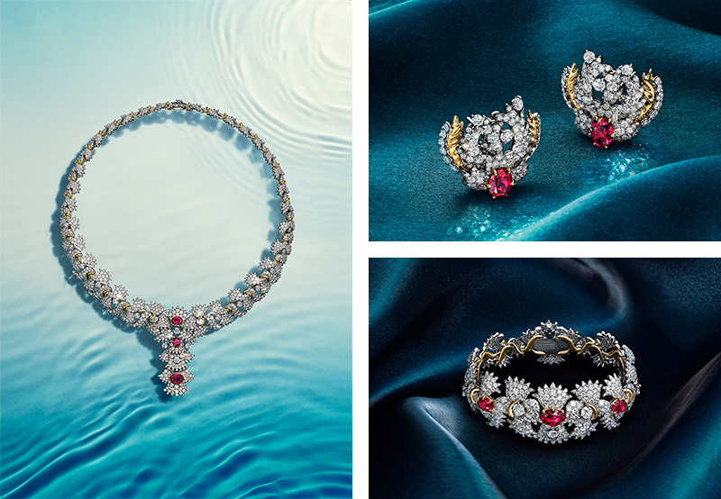 Venturing into Anemone, Tiffany summons the fluidity of sea anemones, and with it, kinetic jewelry. One highlight: a sculptural necklace featuring three unenhanced rubies from Mozambique. Each piece bends, bends again, as if caught in an eternal current. The collection murmurs: the sea is never still.