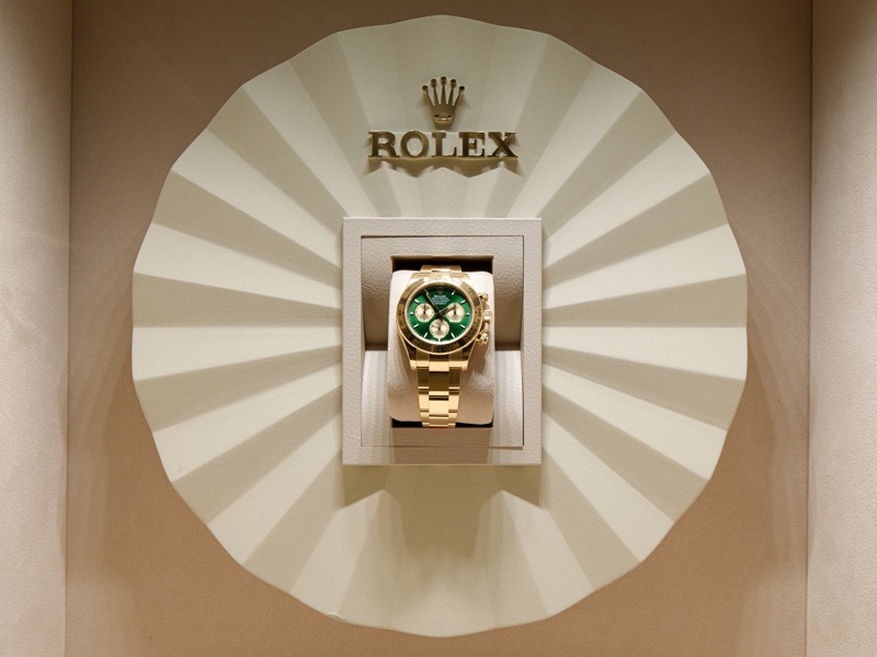 The room’s centerpiece is a glass vitrine housing a Rolex Oyster Perpetual Cosmograph Daytona. With its sunray green dial and yellow-gold bracelet, the watch sits in the center of the room like a silent, ticking North Star. It serves as a visual anchor for a space that is, ultimately, a tribute to the “perpetual”, a concept Rolex has championed through its Arts Initiative and its decade-long partnership with the Academy. By focusing on the “transfer of knowledge” from the masters of the past to the innovators of the future, the Greenroom becomes more than just a place to fix one’s makeup. It is a green-tinted manifesto on the endurance of craft in an industry that usually trades in the ephemeral.