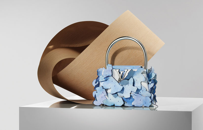 Among the highlights of the capsule are showstoppers like the delicate Capucines Mini Blossom bag, made with glass-like resin petals in an exquisite tribute to perfume bottles, and a hammered LV logo.